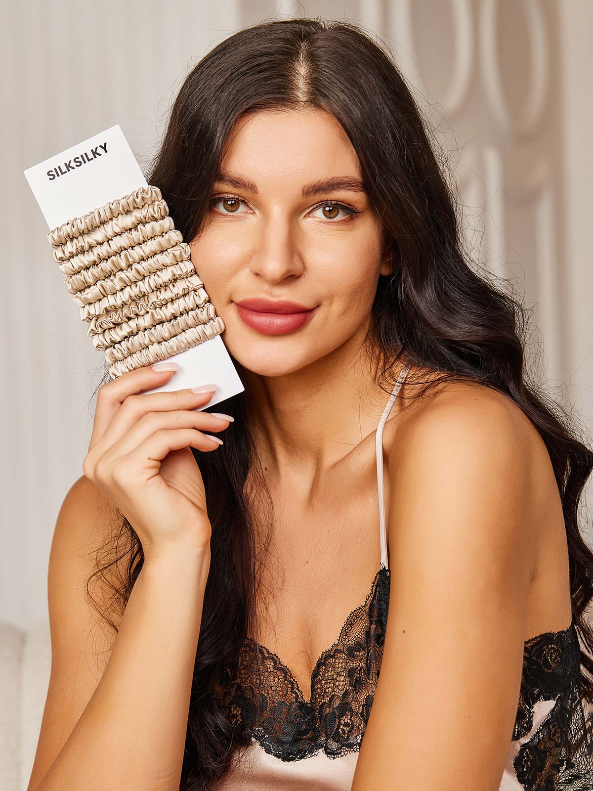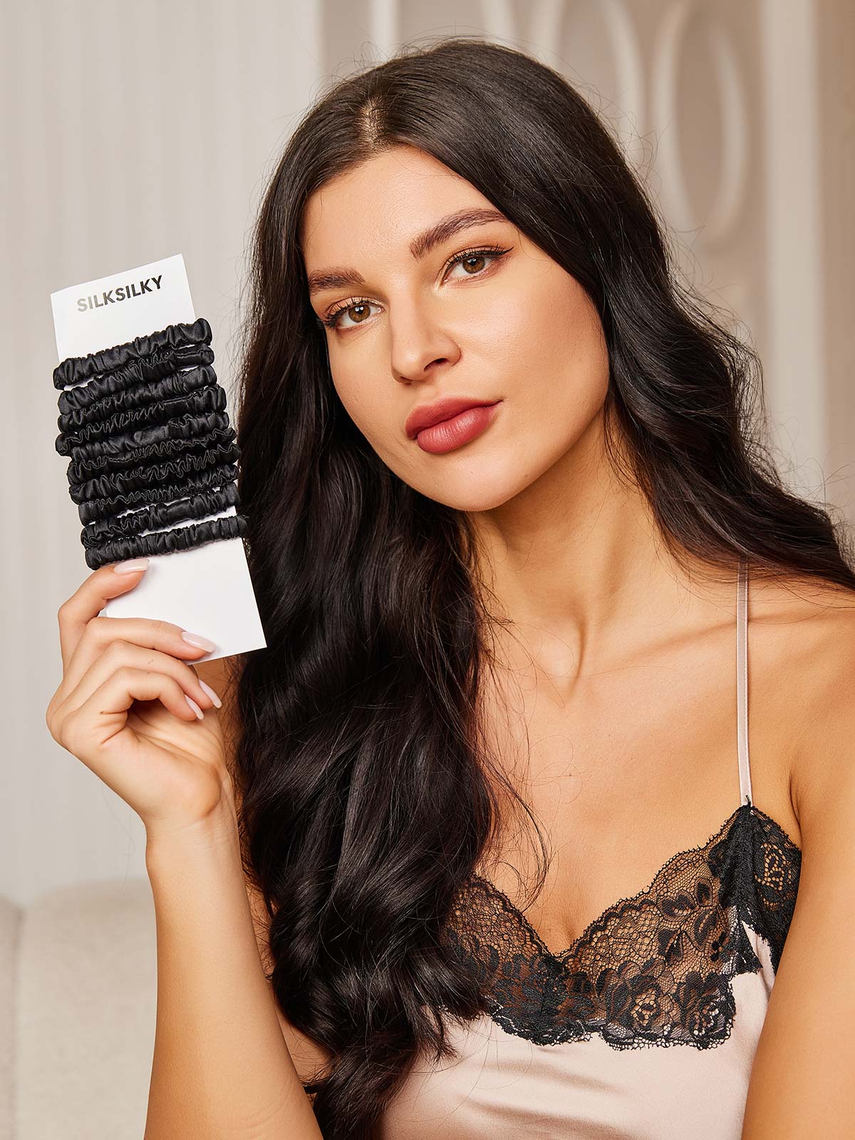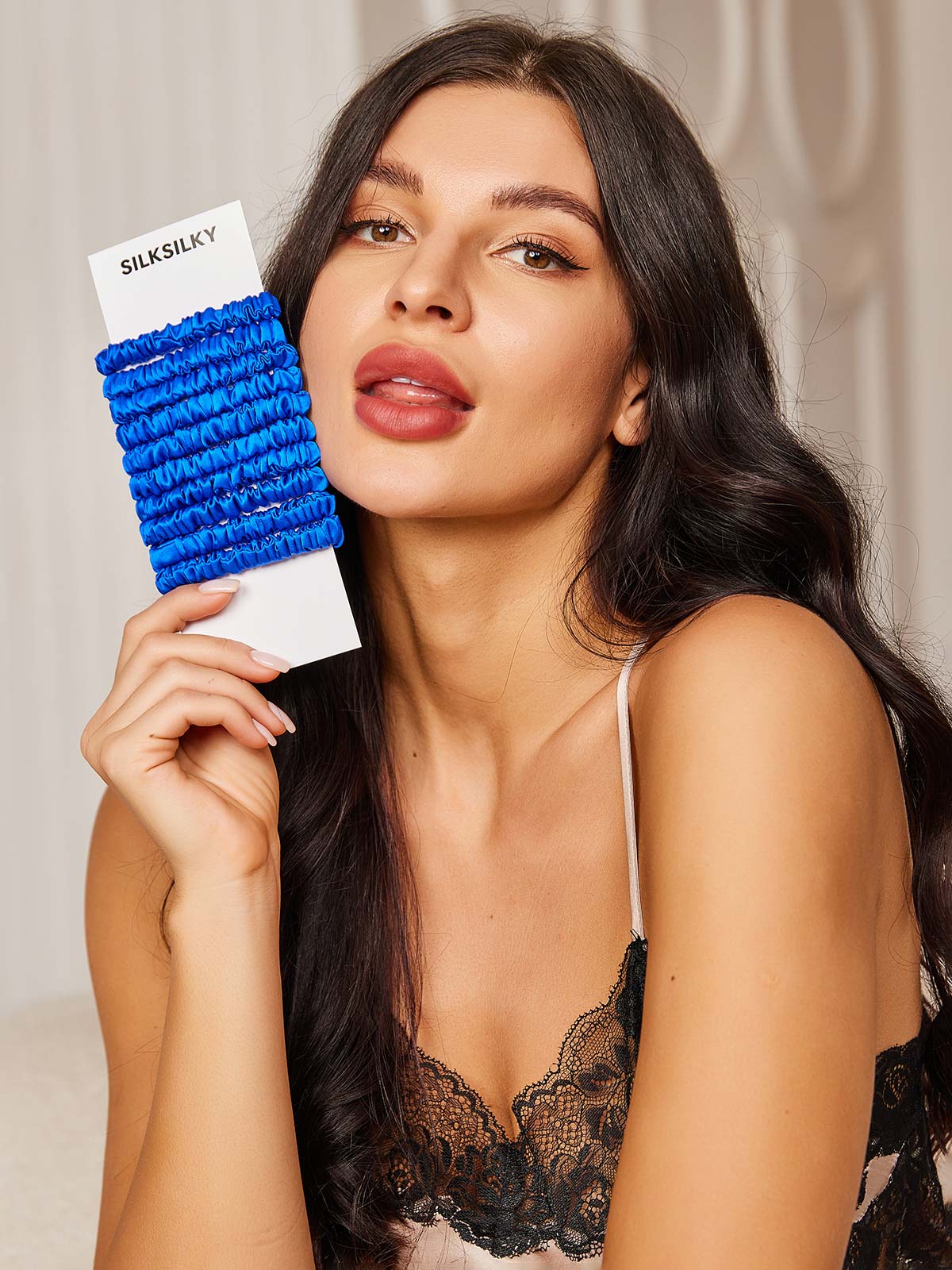 10Pcs Bundle Pure Silk Skinny Hair Scrunchies - 1cm