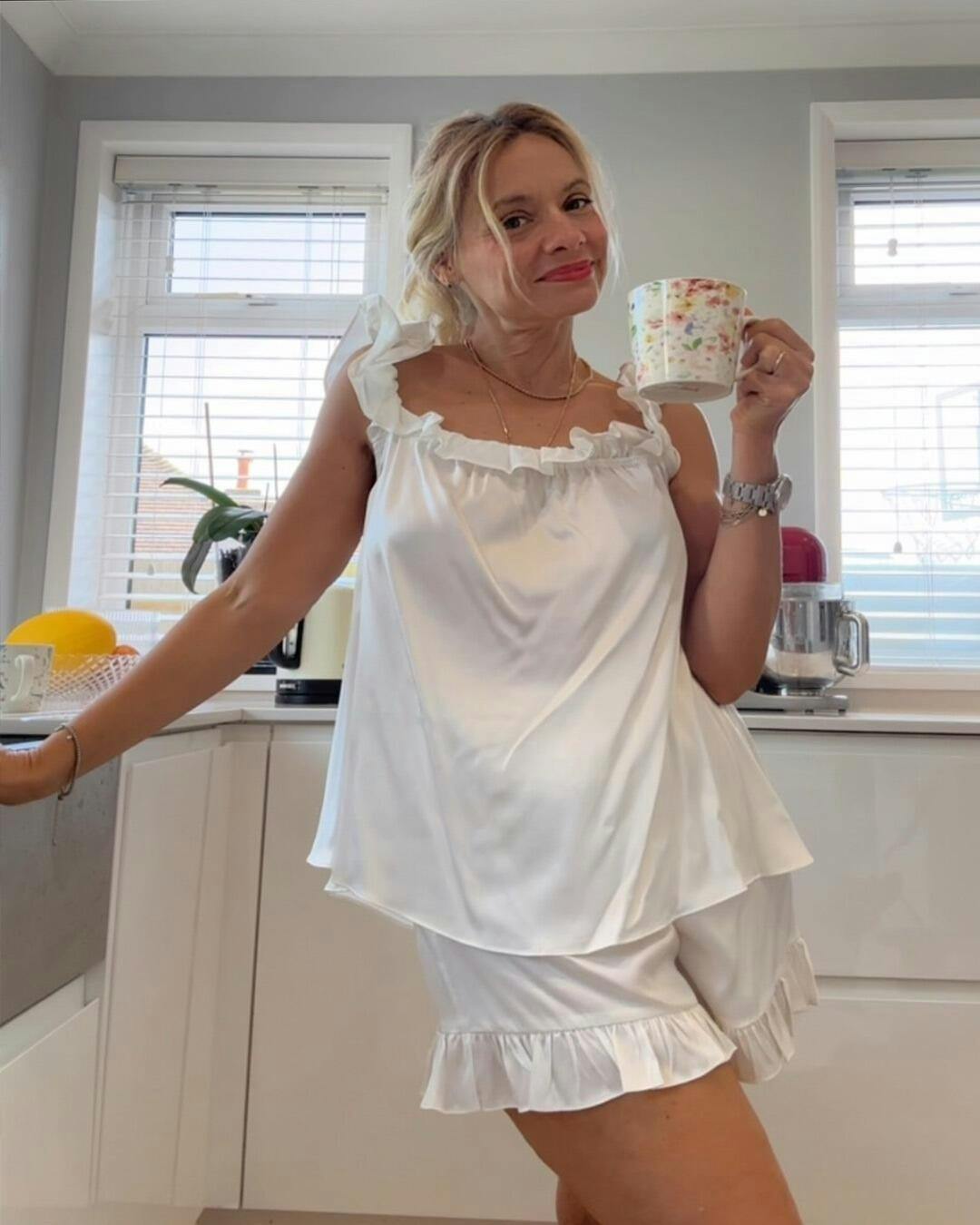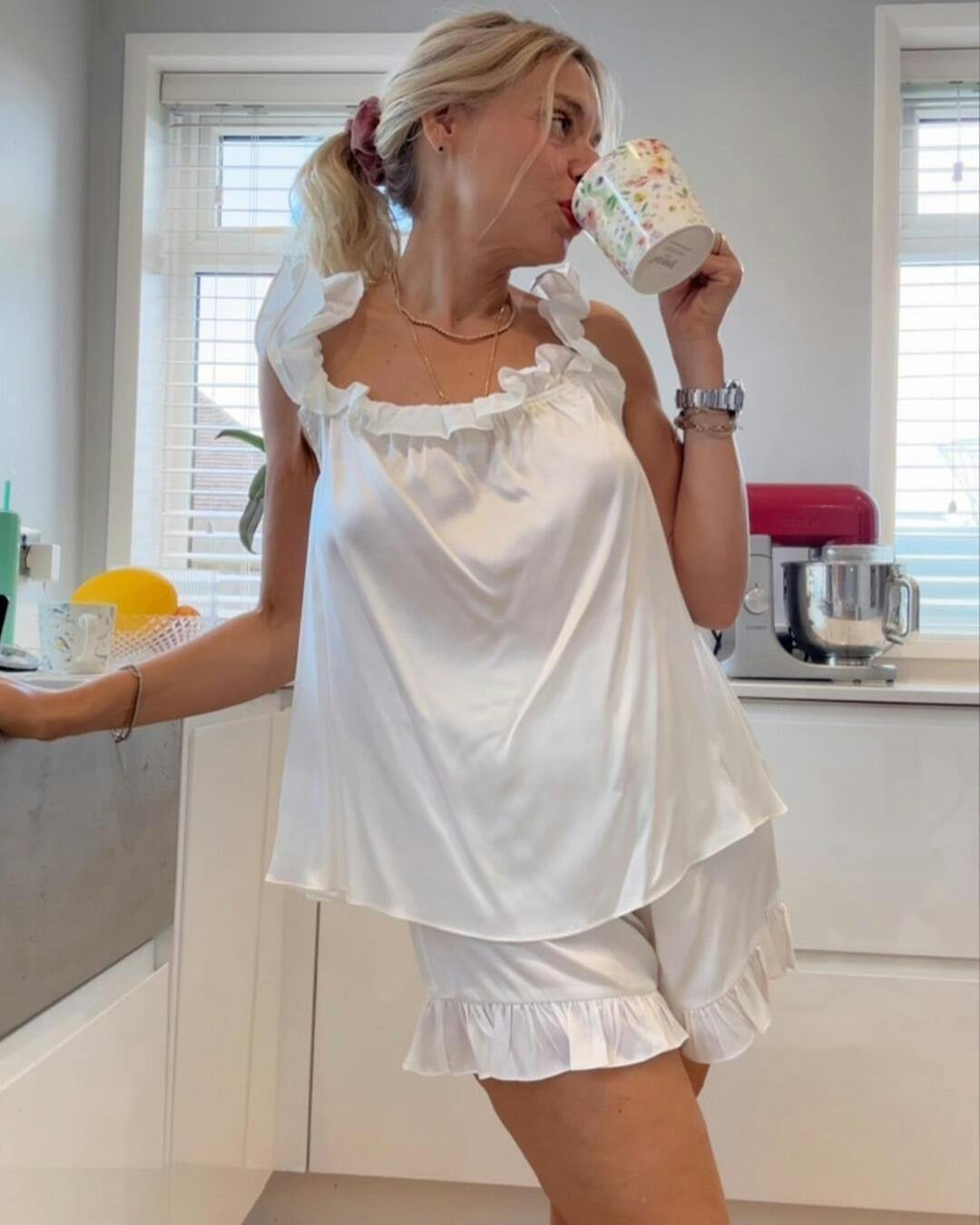 Nothing compares to the comfort of this set—the silk is airy, soft, and feels luxurious, yet it’s perfect for casual, carefree moments outside.