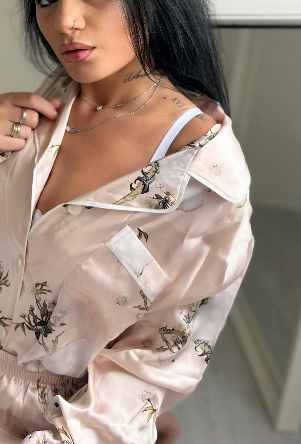 La seta è uno dei tessuti più morbidi e pregiati che esistono. Questo pigiama è in seta 100% ed è come una carezza per la pelle. Una fantasia delicata e una freschezza pazzesca accompagneranno le mie notti. Qualità ottima, spedizione veloce.