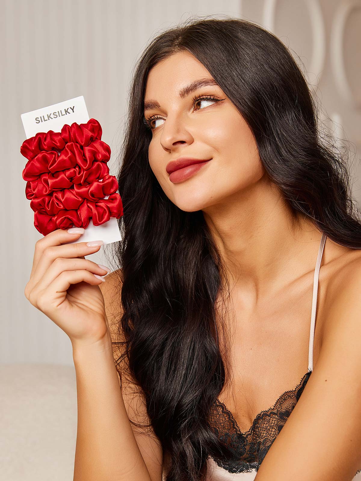 5Pcs Pure Silk Midnight Scrunchies - Regular - 2cm
