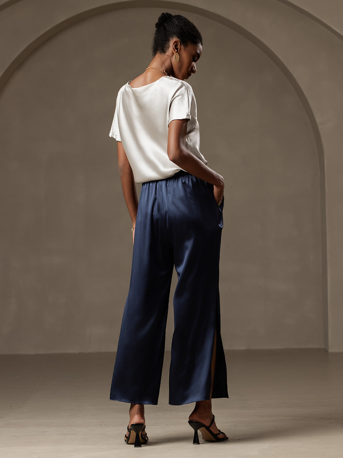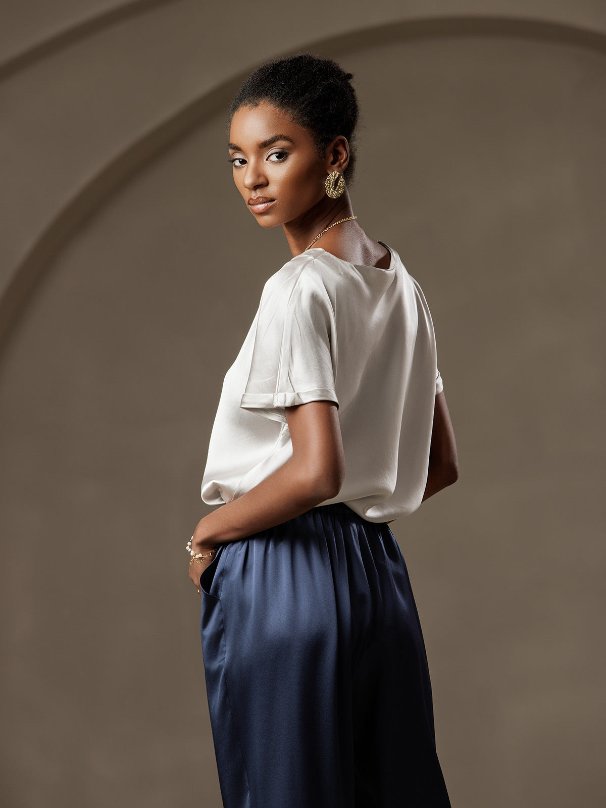 I wasn’t sure about ordering a silk T-shirt, but I’m so glad I did! The short sleeves fit perfectly, and the fabric is lightweight yet feels substantial. It’s elegant enough to dress up, but comfortable enough for lounging.
