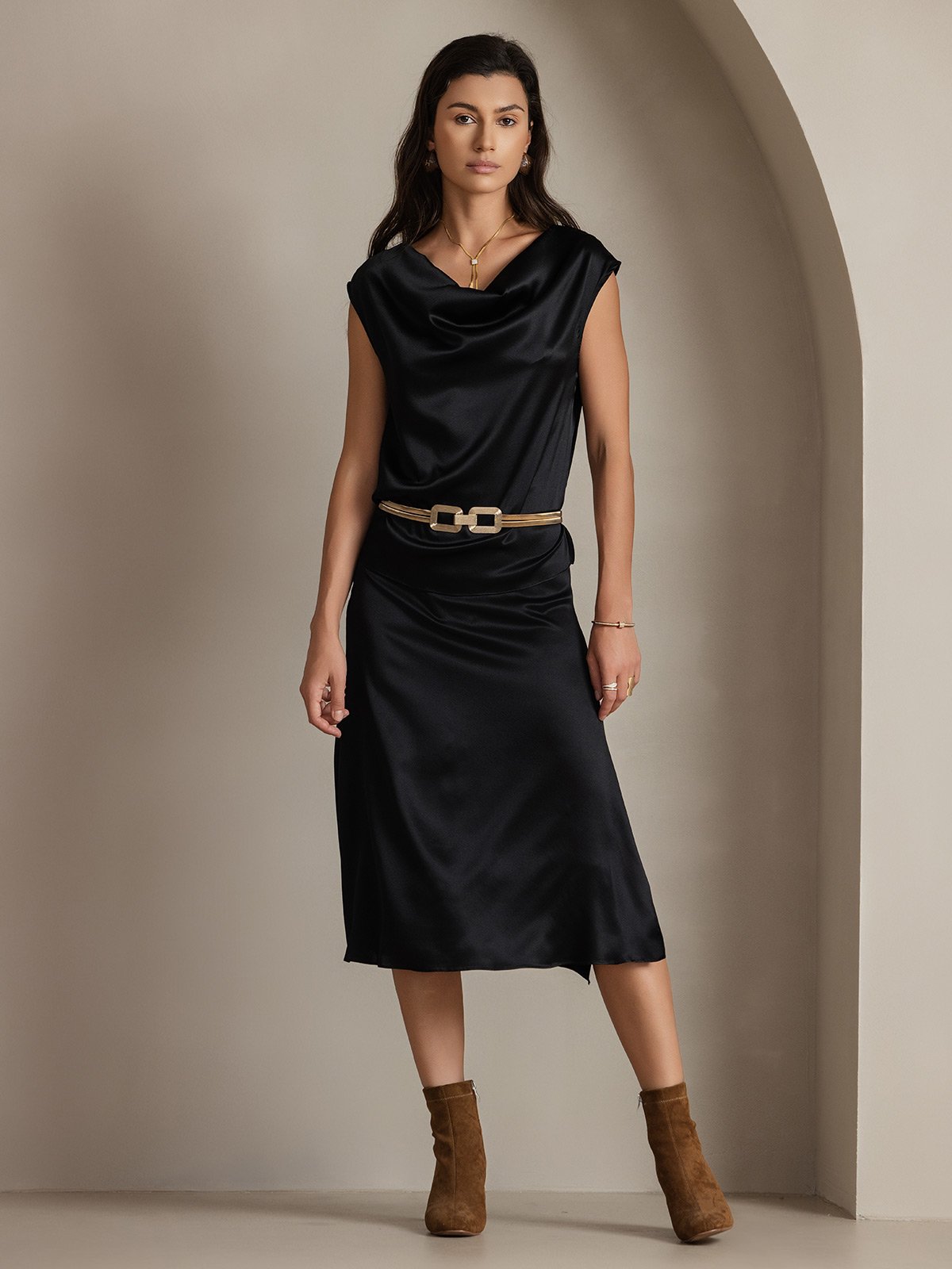 Luxurious fabric that feels soft and smooth. The color is rich and the fit is perfect. A great choice if you love comfort and elegance.