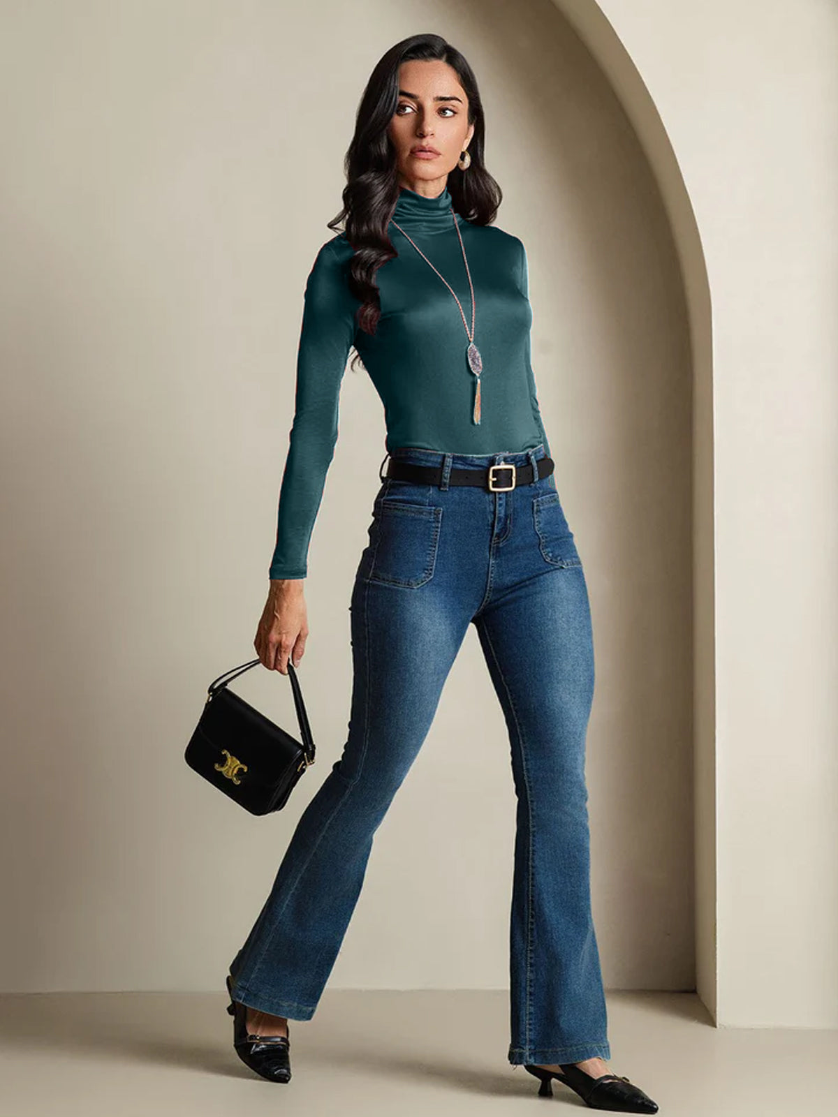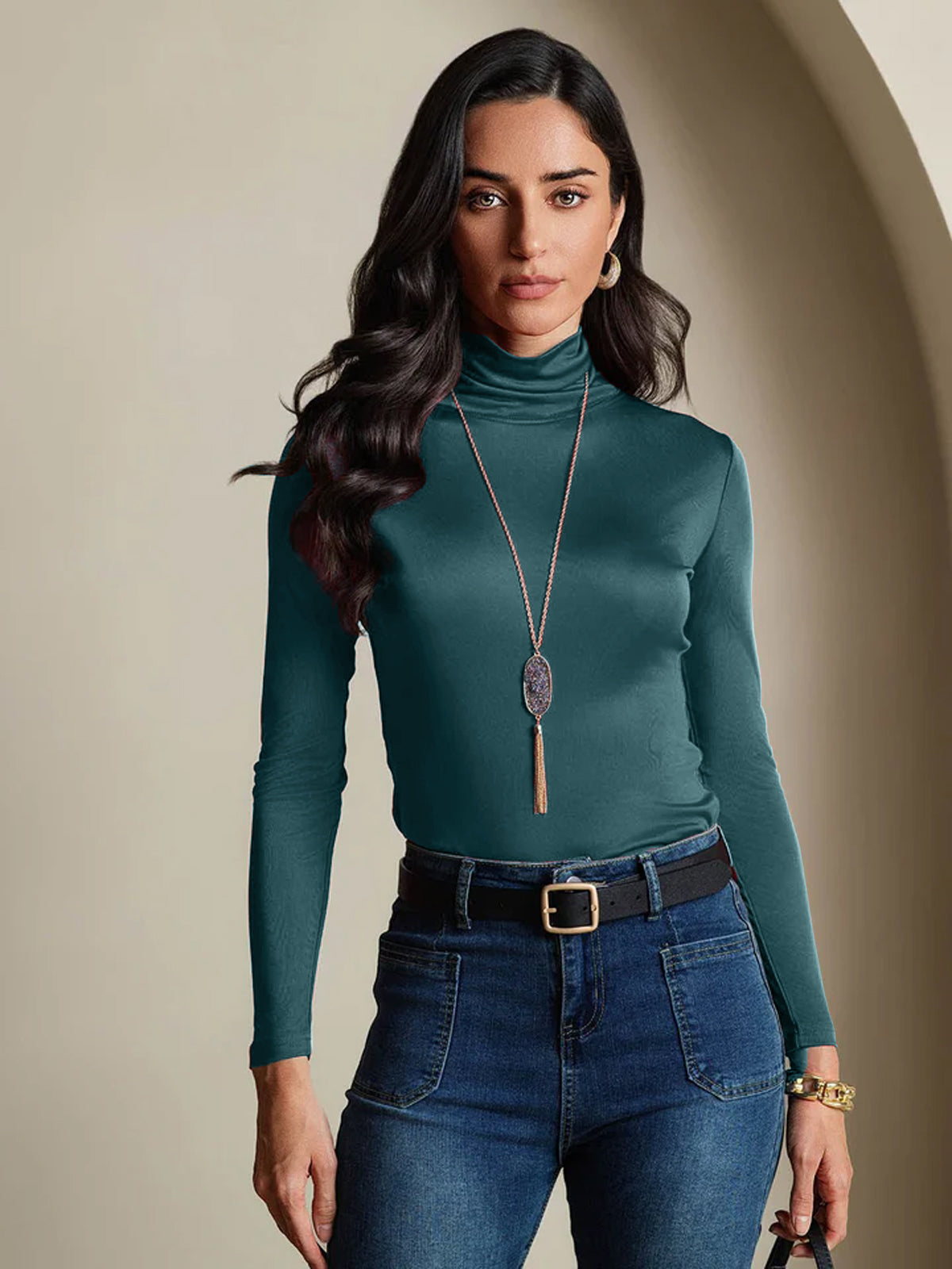 Silk Long Sleeve High Neck Women's Top
