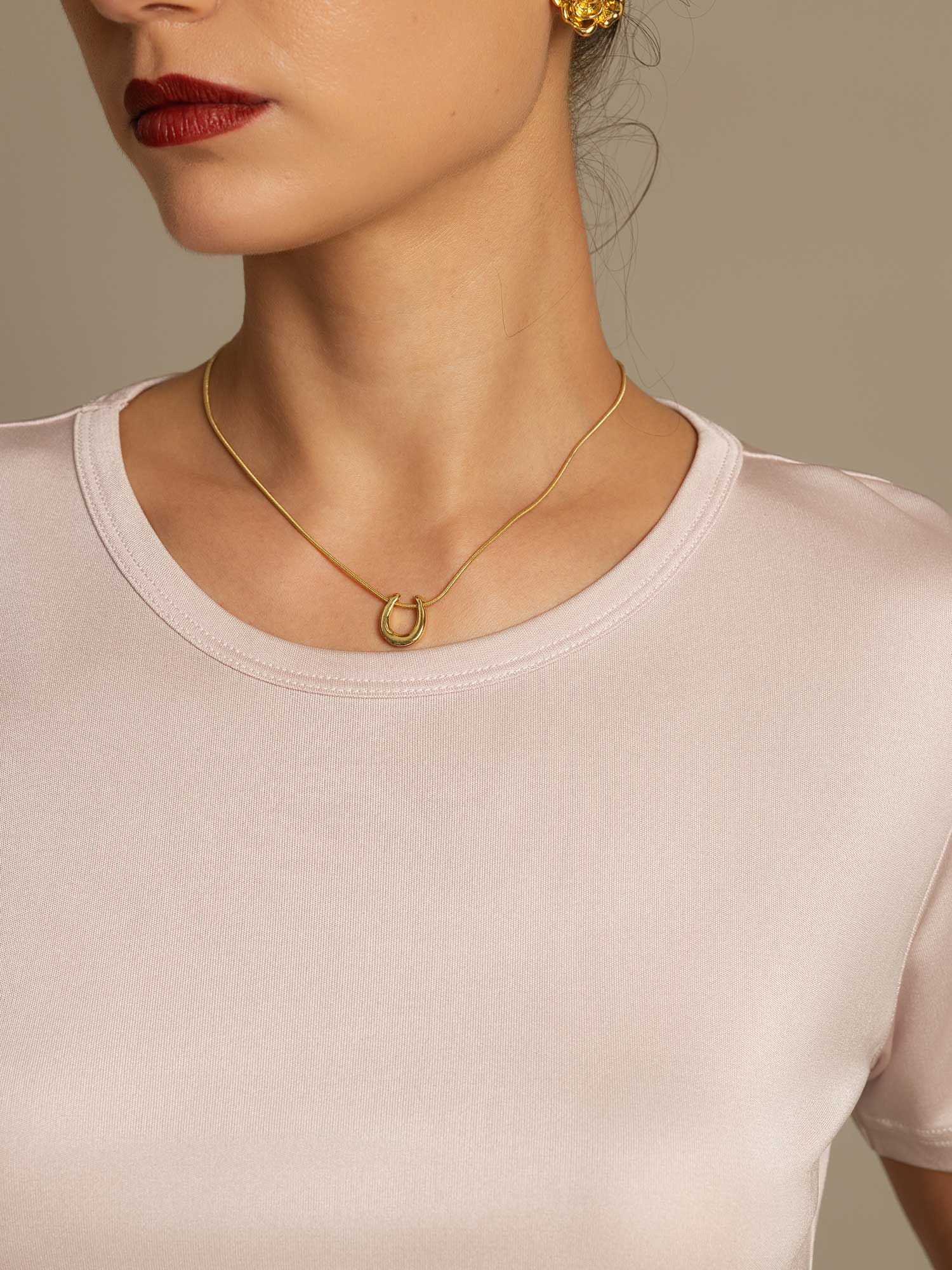 Round-necked silk t-shirt in black is truly elegant and comfortable.